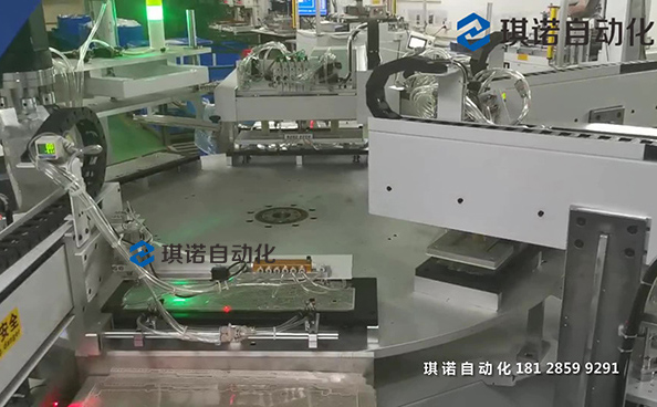 2、待鍵盤膜旋轉(zhuǎn)至檢測(cè)工位時(shí),由檢測(cè)機(jī)構(gòu)完成鍵盤膜的點(diǎn)位檢測(cè),完成后旋轉(zhuǎn)至超聲波電壓工位;